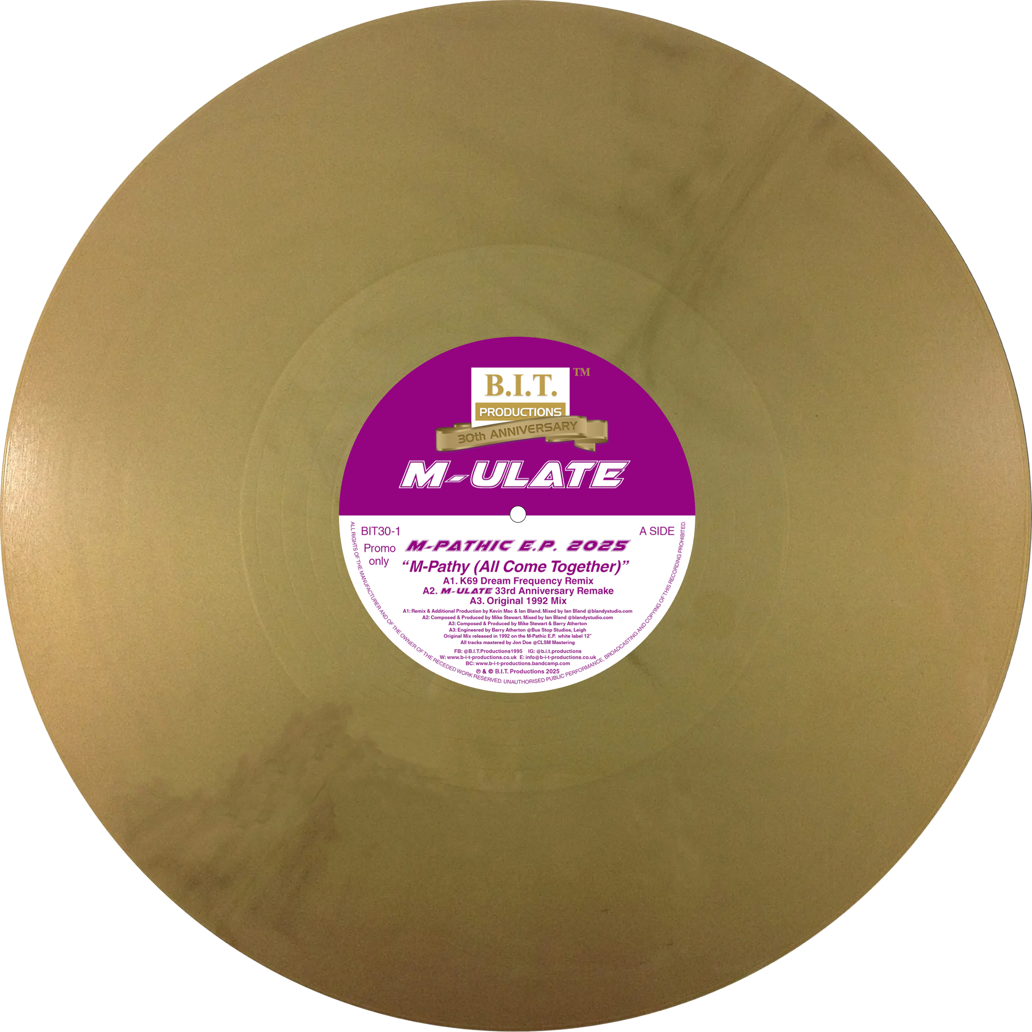 M-ULATE - M-Pathic E.P. 2025 - B.I.T Productions - 12" Gold Vinyl - K69 & Dream Frequency / Stu Chapman - BIT30-1