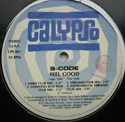 B-Code - Feel Good - Calypso Records - CPS 061 - 12" - Vinyl - Very Good Plus (VG+)